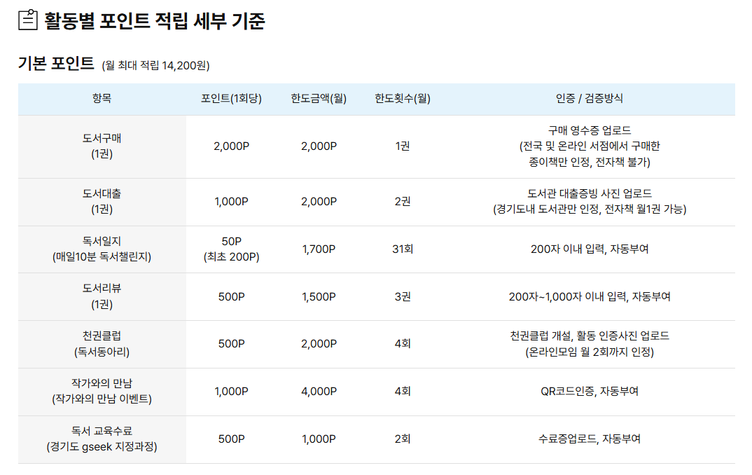 경기도에서 2025년 7월 1일부터 시행 중인 "천권으로 독서 포인트제"가 실행 중이다.