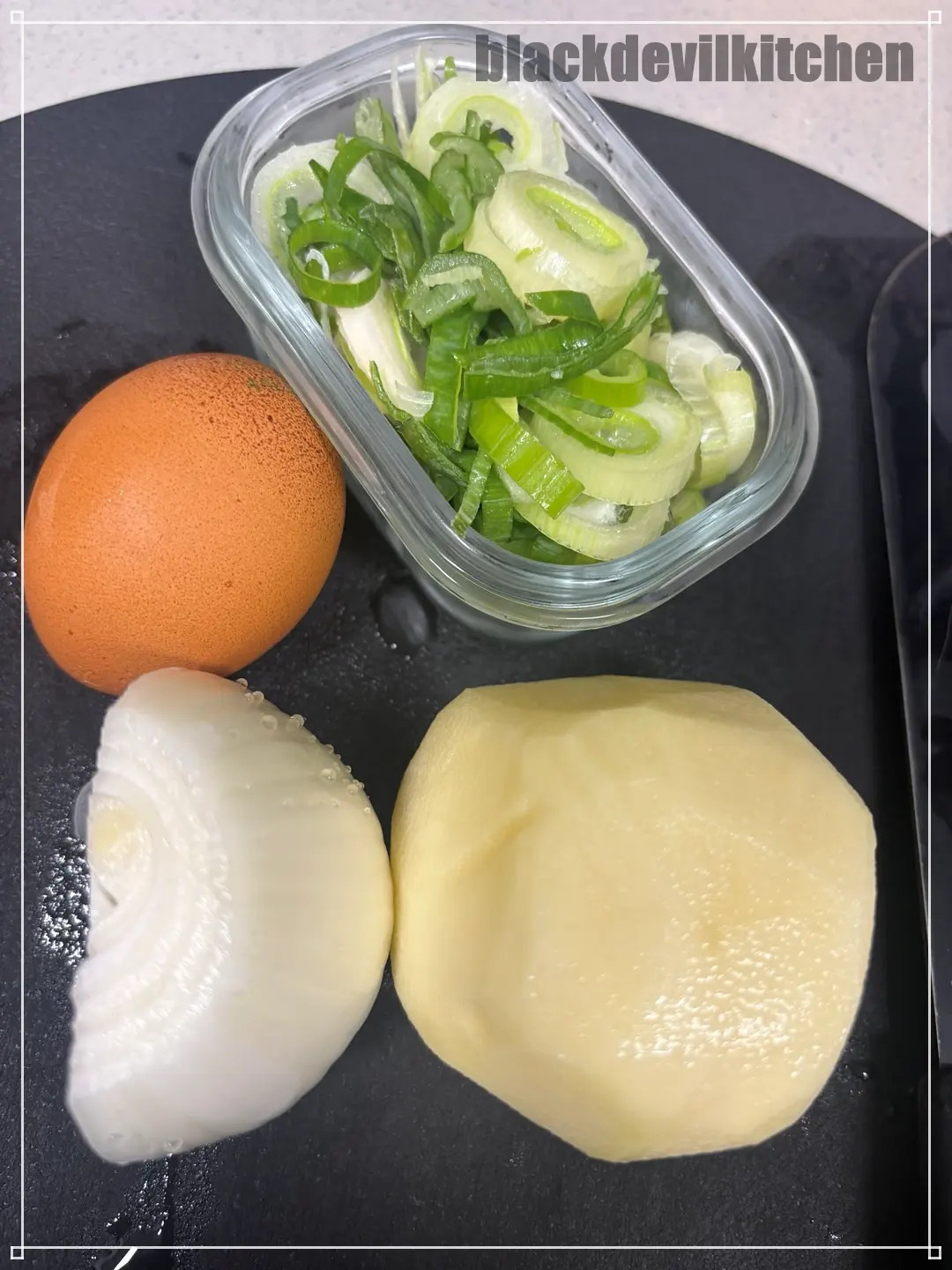 감자, 양파, 대파, 마늘 약간 , 소금, 후추 (육수용 멸치, 다시마)